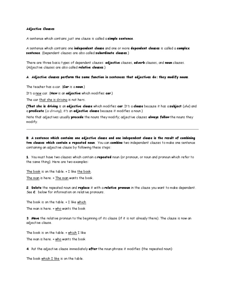 You can observe this rule better by looking at the examples below. Noun clause in apposition to a noun or pronoun: Where, what, when) or if and whether to create implicit questions. Clause = a group of words with a subject and a verb. How do clauses in english work? Subject + verb (linking) + subject complement (adjective, noun, pronoun) example: An adjective clause is a type of clause which can modify a noun or a pronoun. The download at the end will give you additional practice using noun clauses. An adjective clause can be defined as a dependent clause that acts as an adjective. An adjective clause is a dependent clause which takes the place of an adjective in another clause or phrase. If you've watched the hunger games: Register free for online tutoring session to clear your doubts. As their name implies, these clauses depend on independent clauses to clearly express ideas.